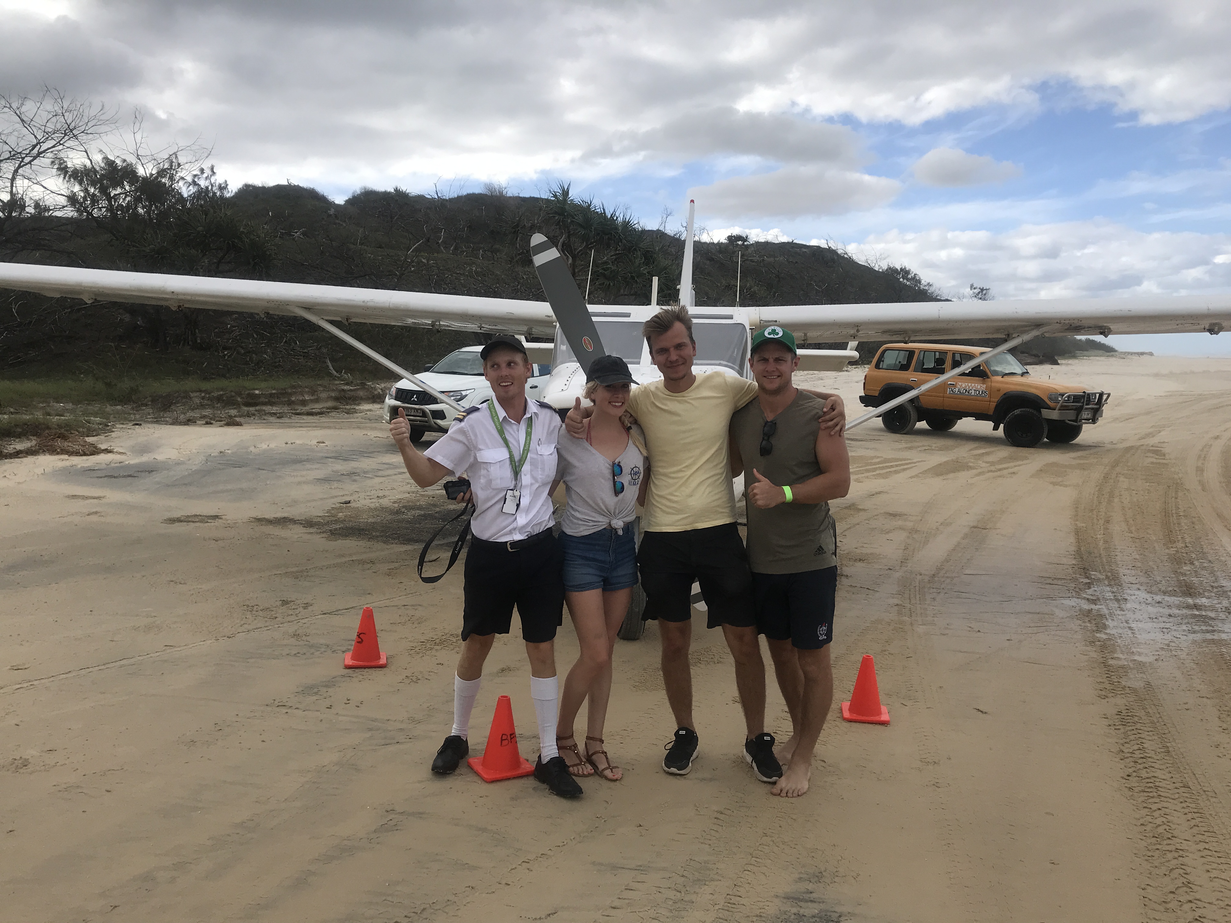 While the group was at Eli Creek we had the option to take a 15 minute plane ride around the island with Air Fraser for $60 AUD. I love prop planes and thought this was a good deal, so I signed up. There were two planes and only six of us decided to go, so we only had three people in each plane. It was definitely worth the money.