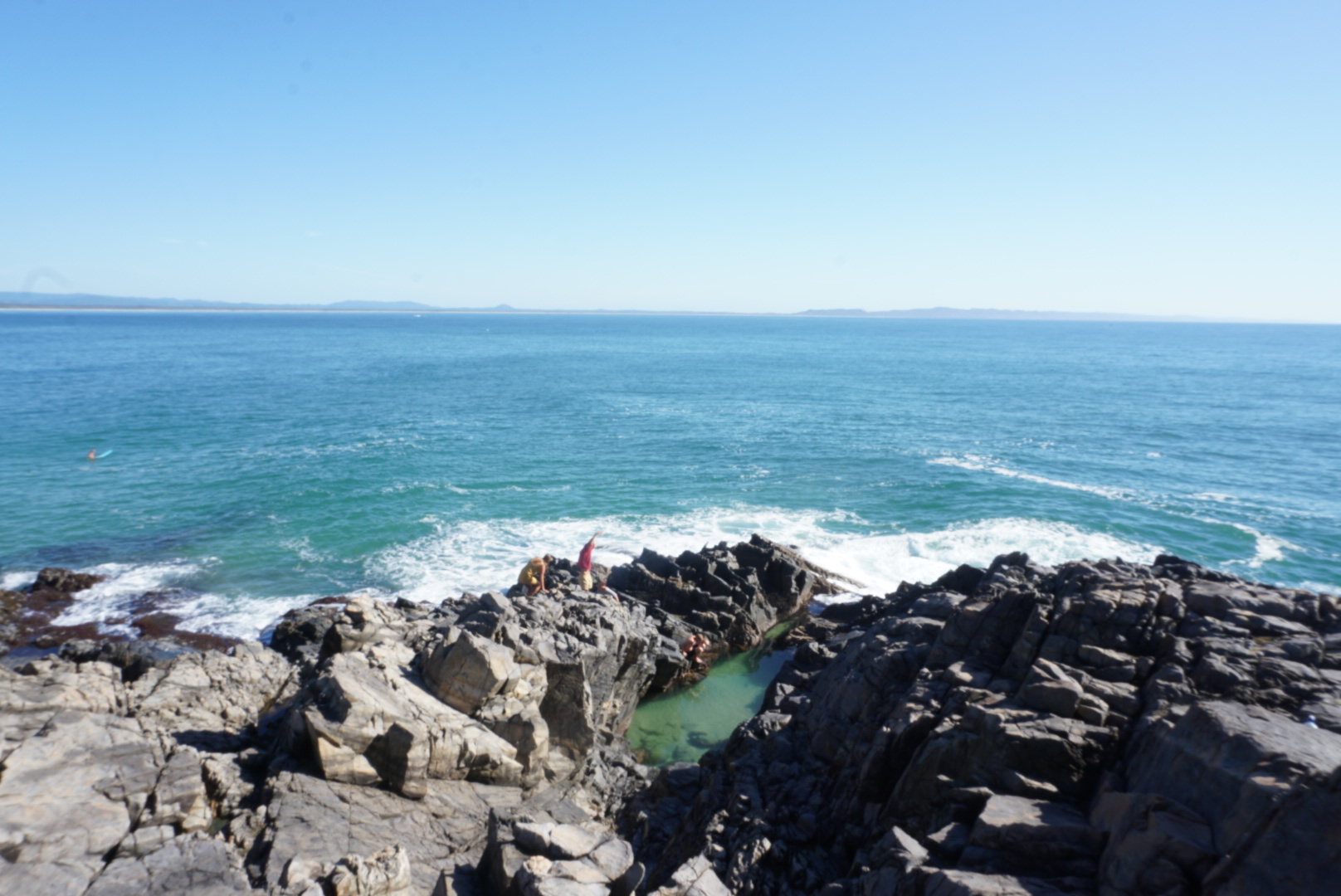 Swimming in the ocean on Fraser Island is highly discouraged, as there are tiger shark feeding frenzies surrounding the entire island. However, places like the Champagne Pools are safe from sharks thanks to the rock barricade between the pool and the ocean. These pools got their name because whenever the waves hit just right it looks like champagne flowing over the rocks. I tried to get a picture of the champagne-esk splash in the third picture below.